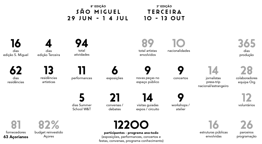 Festival de Artes, programa anual de residências e projeto bandeira da Anda&Fala, completou a sua 8ª edição na ilha de São Miguel entre os dias 29 de junho e 14 de julho. Foram 16 dias de Festival que se prolongam a um programa ano-todo, com residências artísticas, apresentações, coproduções e uma extensão de três dias à ilha Terceira, em 2018 realizada de 10 a 13 de outubro.