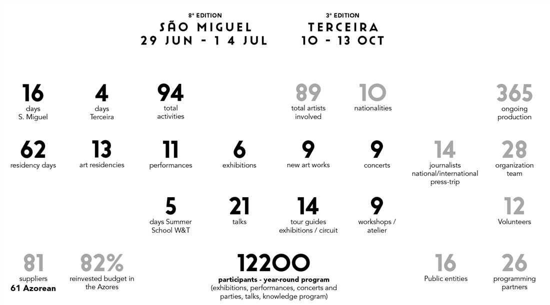 arts festival, annual residency program and flag project of Anda&Fala, completed its 8th edition on the island of São Miguel from June 29 to July 14. 16 days of the Festival that extended in a year-long program, with artistic residencies, presentations, co-productions and a three-day extension to Terceira Island, held from 10 to 13 October.