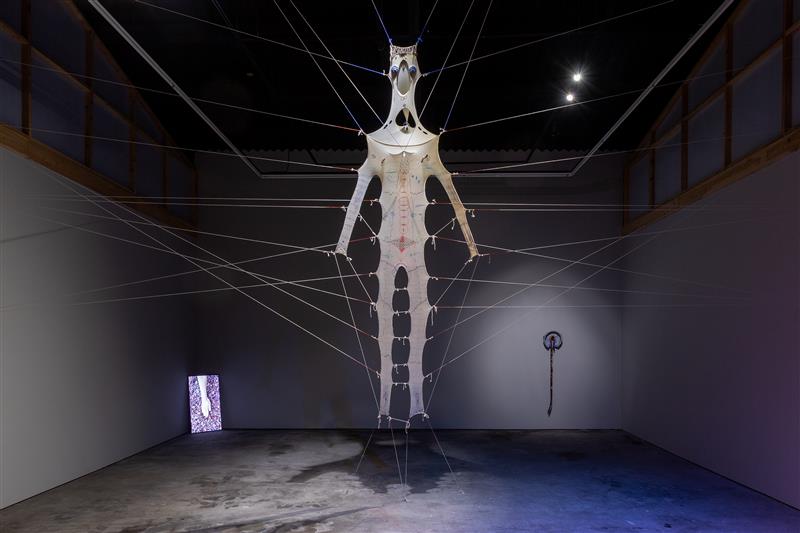 As if caught up in this time and space that seems to stretch endlessly before their eyes, Violaine Lochu and Sara Bichão return with singular experiments and a collection of sounds, signs, and forms that they communicate to us through fabulous objects. From silence, sculptures with raw forms and instinctive manufacturing are born. This set of objects produced by Sara is then activated by Violaine, who, through a vocal and choreographic composition, transmits notes from the sea bed to us. Wearing the suit created in the Créac'h watch room and bearing the writings of an oracle that has come down to us, this human being does its double reading of this experience.