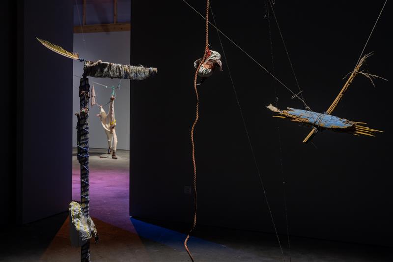 Twin Islands resulted from a month-long residency between March and April 2022: the visual artist Sara Bichão at the Creac'h lighthouse (Ouessant, France) and the performer Violaine Lochu at vaga (São Miguel, Azores). Aiming to communicate from a distance and trying to translate their island experience, the artists have produced a body of work that crosses sculpture (with vernacular objects and other personal belongings), video, and performance, using an alphabet of sounds and movements created for the purpose.