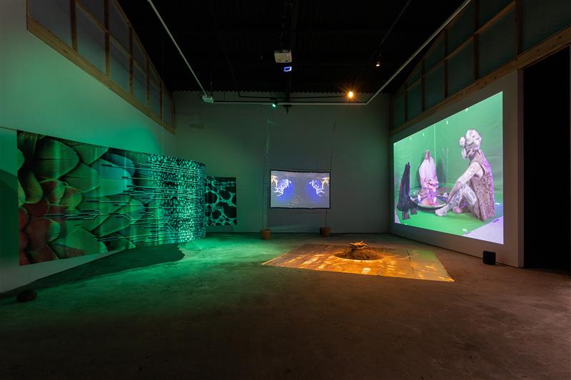 Kolbeinn Hugi is a visual artist born in the Arctic Neo-Cryptocolony of Iceland. Animal Internet, his first solo exhibition in Portugal, presents a group of works that speculate on alternative models of coexistence and empathy and possible economies of space, ecology and inter-species relationships. Steaming from ecofuturist references, pseudo-archaeology and Internet culture, he challenges viewer to envision a post-capitalist future where humanity is a constructive part of Earth's ecology.