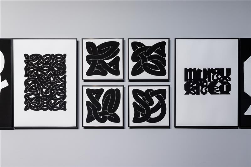 The exhibition TYPE + DRAFTS + IDEAS is an introduction to Krot & Krass's practice. Conceived as an installation, it presents various type experiments based on the artist's research on Iceland's graphic history, from large murals to prints. Their main research subject has been Höfðaletur, the only original Icelandic typeface dating back to the 16th century and traditionally used for wood carvings. Höfðaletur can be quite indecipherable, and its use and development has been mystified. Höfðaletur was passed on within the community; more often than not, it changed in the hands of each artist. At a certain point in time, this development stopped. Over their careers, the artists have continued Höfðaletur's development - as well as other types from Iceland, like Munkaletur, Fléttuletur, or Galdraletur, activating them through contemporary projects, and expanding their forms while honoring their history and ancestrality.
