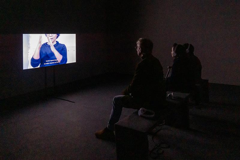 The work highlights differences between languages whose expression passes through the body, exposing a multiplicity of modes of communication and their possible cohabitation. It explores a sensitivity to the diversity of bodies while blurring divisions between ability and disability. The idea of translation as equivalence of meanings is rejected and, instead, the work considers meaning that is in permanent transformation, supporting other forms of common existence.